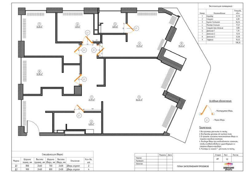 | План дверей с экспликацией |