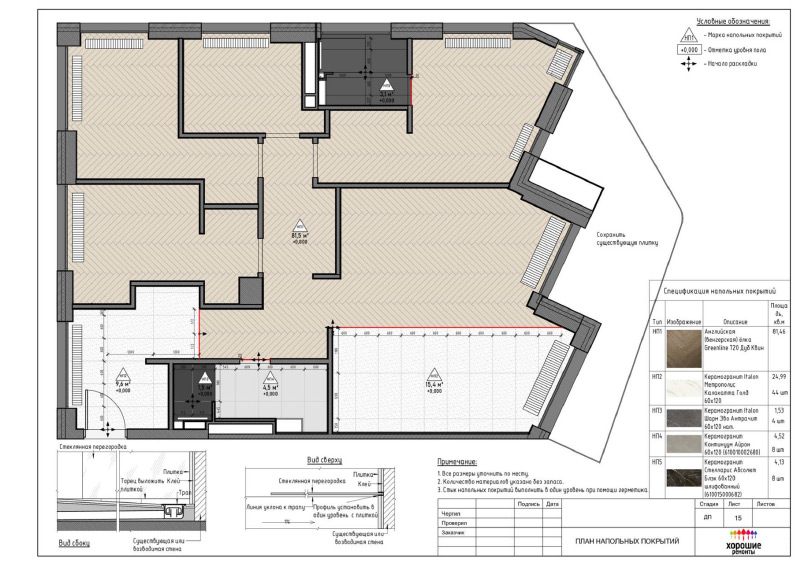 | План полов с указанием типа наполного покрытия |