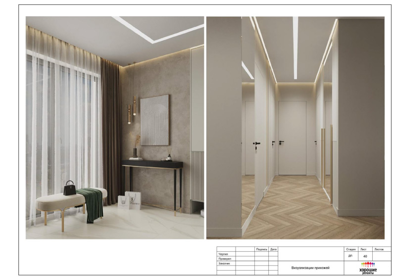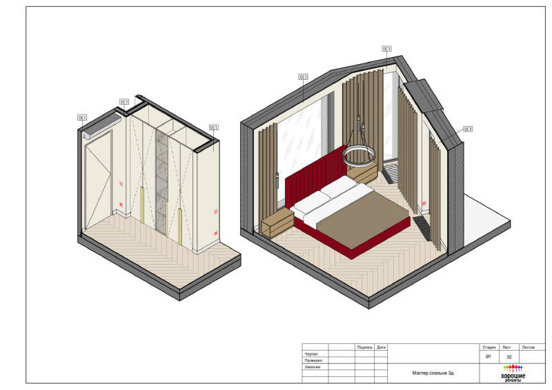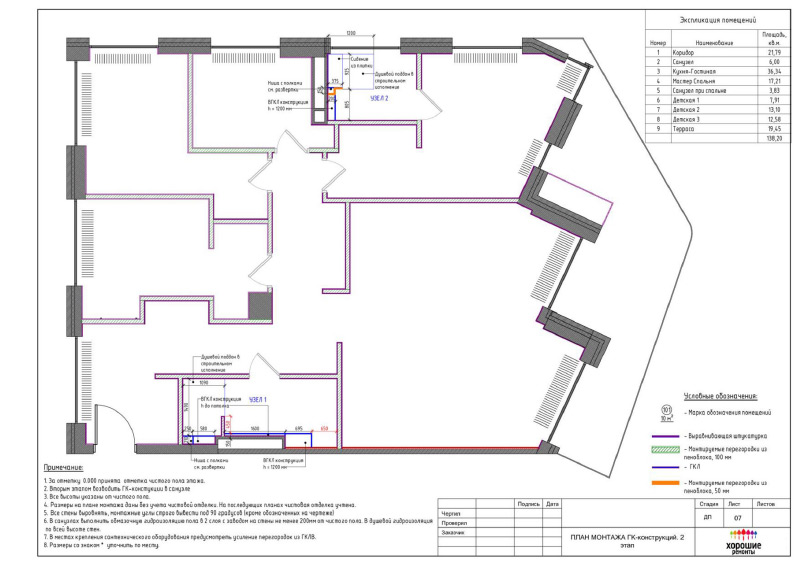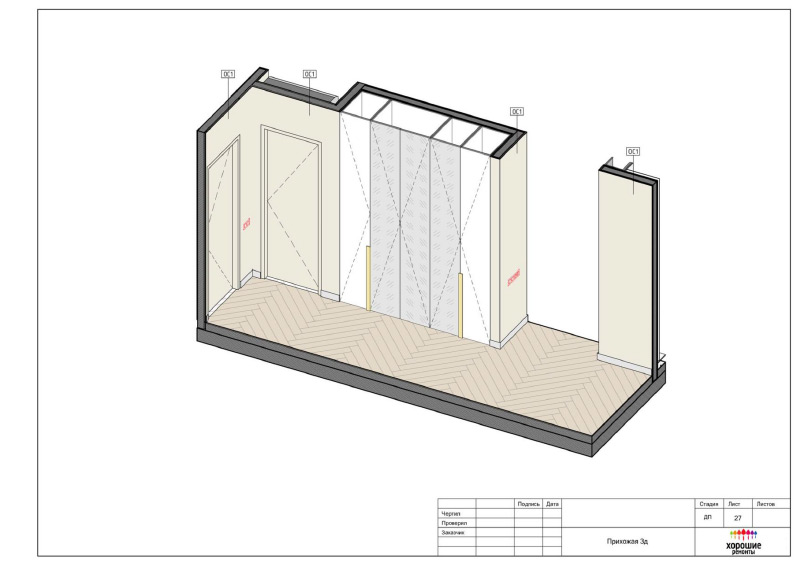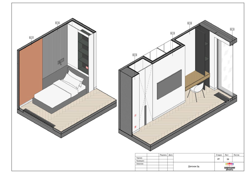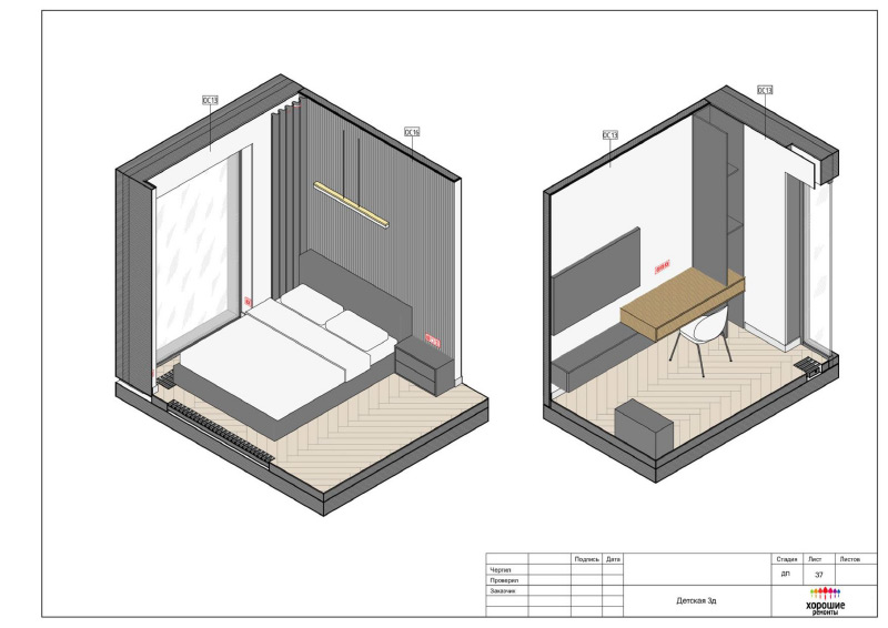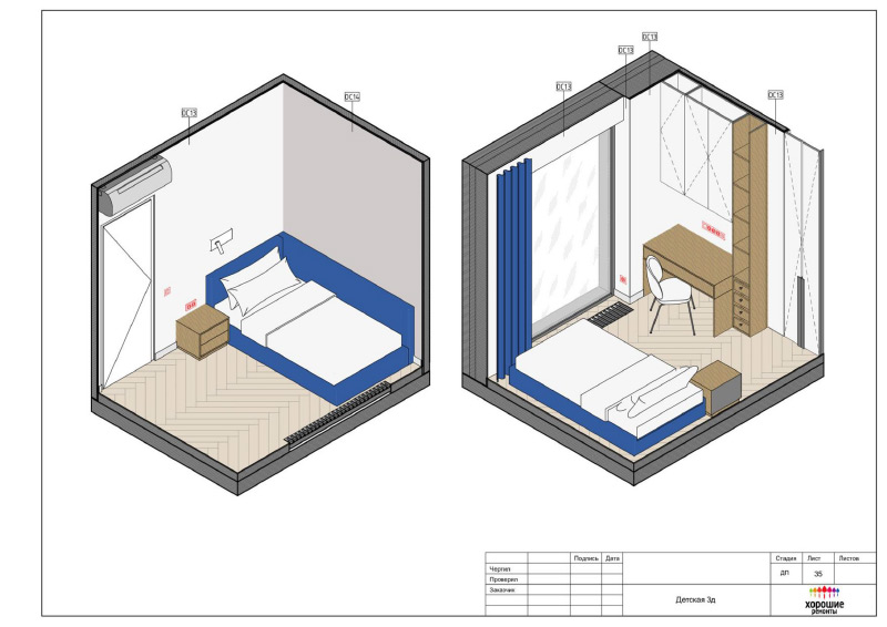 | Развертки стен по комнатам с привязкой декора и электрики, конструкции из ГКЛ |