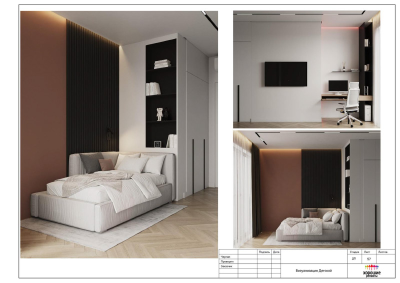| Визуализация интерьера (2-3 видовые точки одного помещения) |