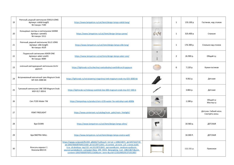 | План расстановки светильников |