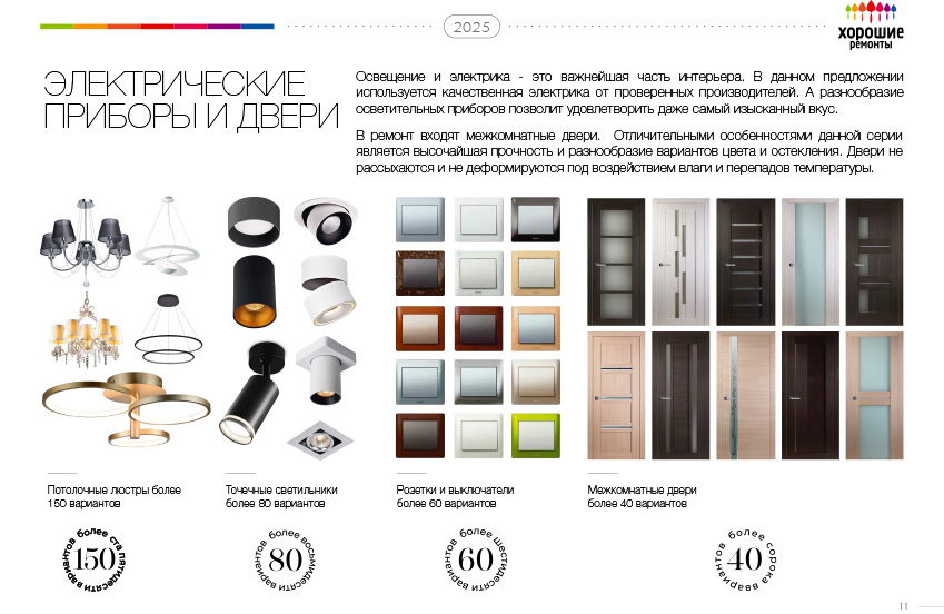 • Установка межкомнатных дверей (до 35м2 - 2 шт, 35-50 - 3 шт, более 50 м2 - 4 шт.)