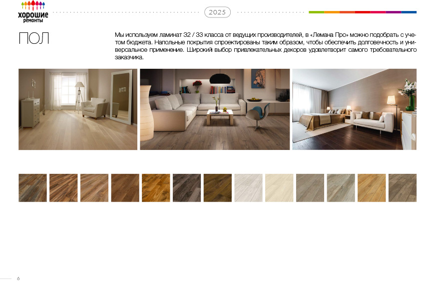 Материалы: Ламинат (стоимость до 1000 руб / м2). Общее количество может составлять 100% площади объекта