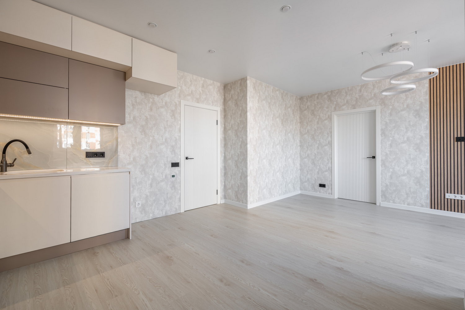 Выполним все работы «под ключ» от стяжки до укладки плитки, поклейки обоев, установки розеток, выключателей, светильников и сантехники.